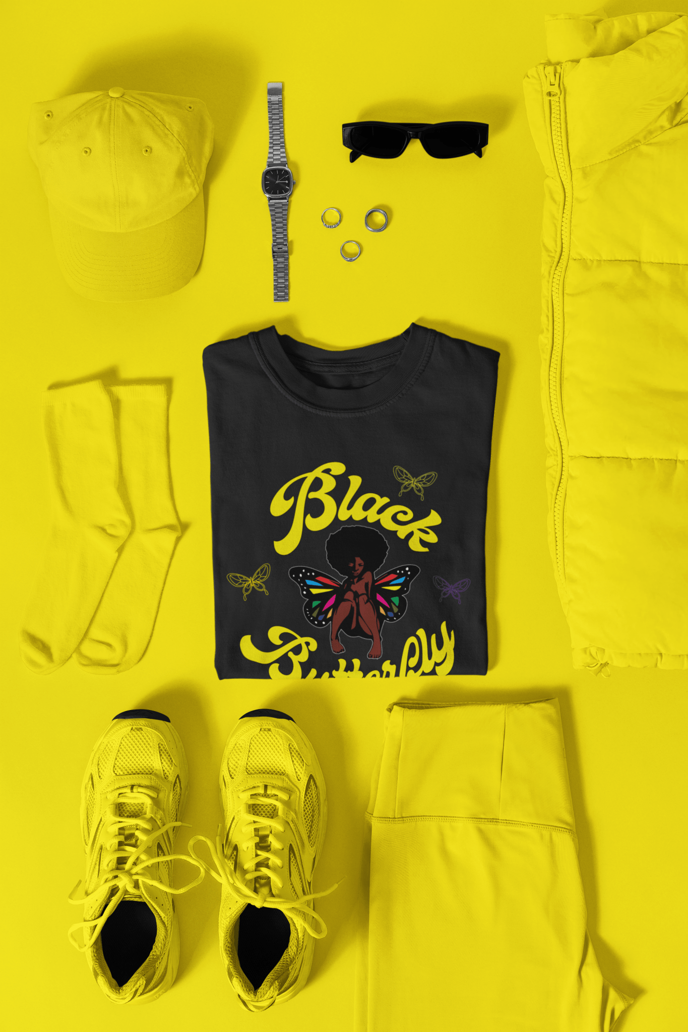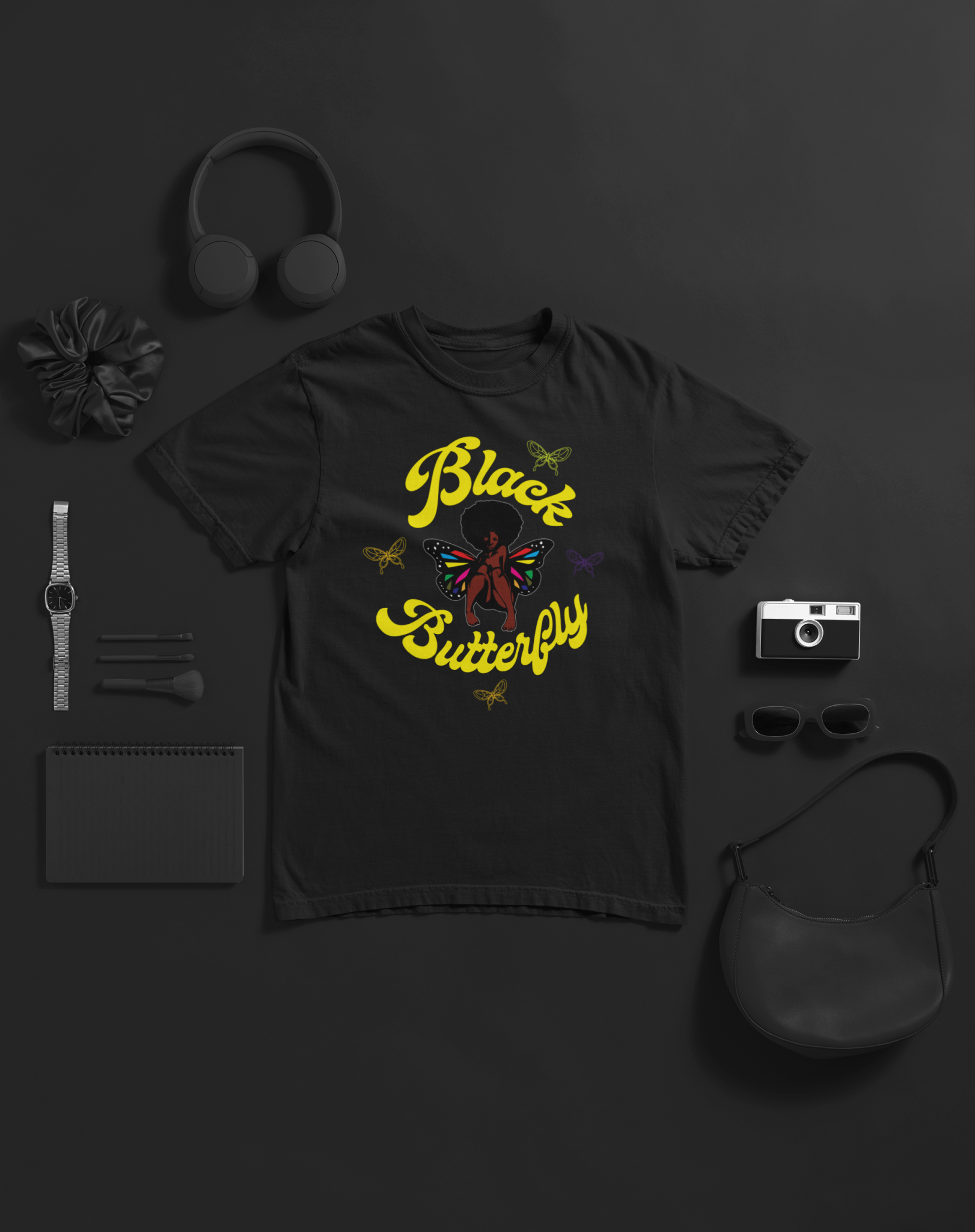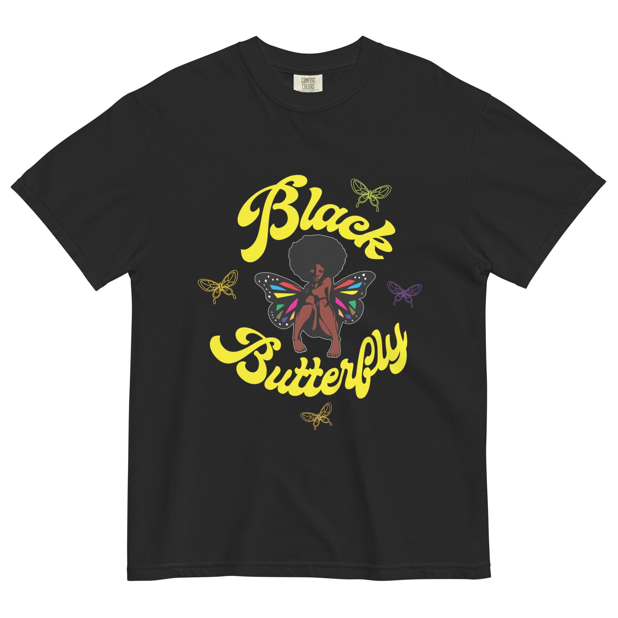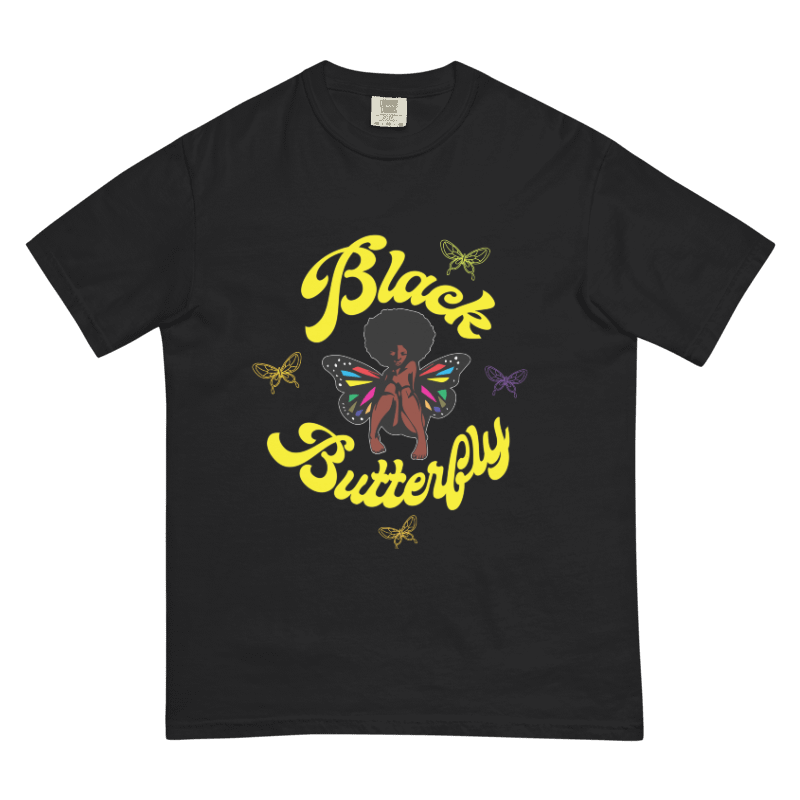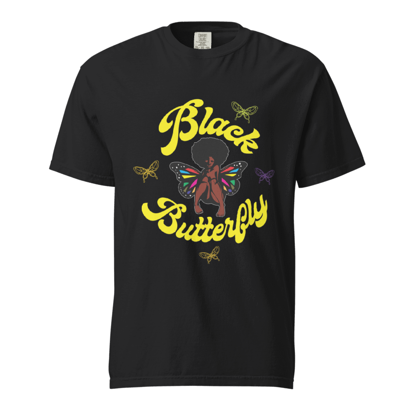 Celebrate beauty and culture with our "Black Butterfly" T-Shirt. This eye-catching graphic features a beautiful figure with an Afro and vibrant, colorful butterfly wings, symbolizing transformation, freedom, and Black Girl Magic. Printed on a premium Comfort Colors-style garment-dyed tee, it’s a beautiful statement piece that feels as good as it looks.